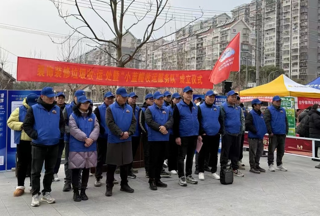 短时间内都能及时清走,崇川区建建拆修垃圾措置协会组建了专业的“小蓝帽收运办事队”,